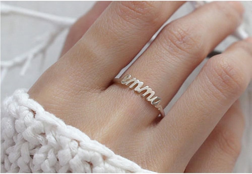 Amazon Com Christmas Gift Name Ring For Women Personalized 18k Gold Plated Custom Band Rings Dainty Stackable Ring With Engraved Name Customized Initial Rings Name Ring Style 03 Handmade Products
